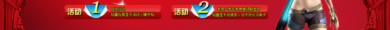 即日起至2011年8月31日,老用戶以任意型號銘鑫顯卡在銘鑫各地辦事處購買新顯卡,可在媒體價基礎(chǔ)上折價100元(網(wǎng)睿系列不參與活動)。