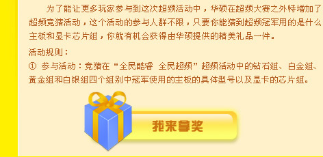 1、本次活動設有鉆石組、白金組、黃金組和白銀 組四個組別,選手分別采用Intel i7 920、Q8 200、E5200和E2140處理器,配合華碩主板進行 超頻。超頻環(huán)境不限。 2、參賽者通過華碩超頻比賽專題頁面,按照統(tǒng)一的格式上傳成績截圖(需采用大賽提供的圖片作為桌面背景)進行參賽。 3、截圖格式如圖所示.玩家需使用CPU-Z軟件來表示主頻,該軟件可在專題頁面上下載...