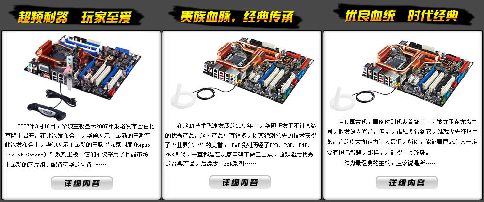 2007年8月2日,世界頂級IT廠商華碩在北京中關村慧聰書院舉辦“貴族血脈,經典延續(xù)—華碩P5K系列主板媒體溝通會”,在本次活動中,華碩展示了最新的P5K系列主板:包括:玩家國度系列和18周年紀念版黑珍珠系列,它們不僅采用了目前市場上最新的芯片組,配備豪華的裝備,并且擁有華碩獨有的各種特色功能,完全可以滿足頂級電腦發(fā)燒友和數字娛樂用戶的所有需求。